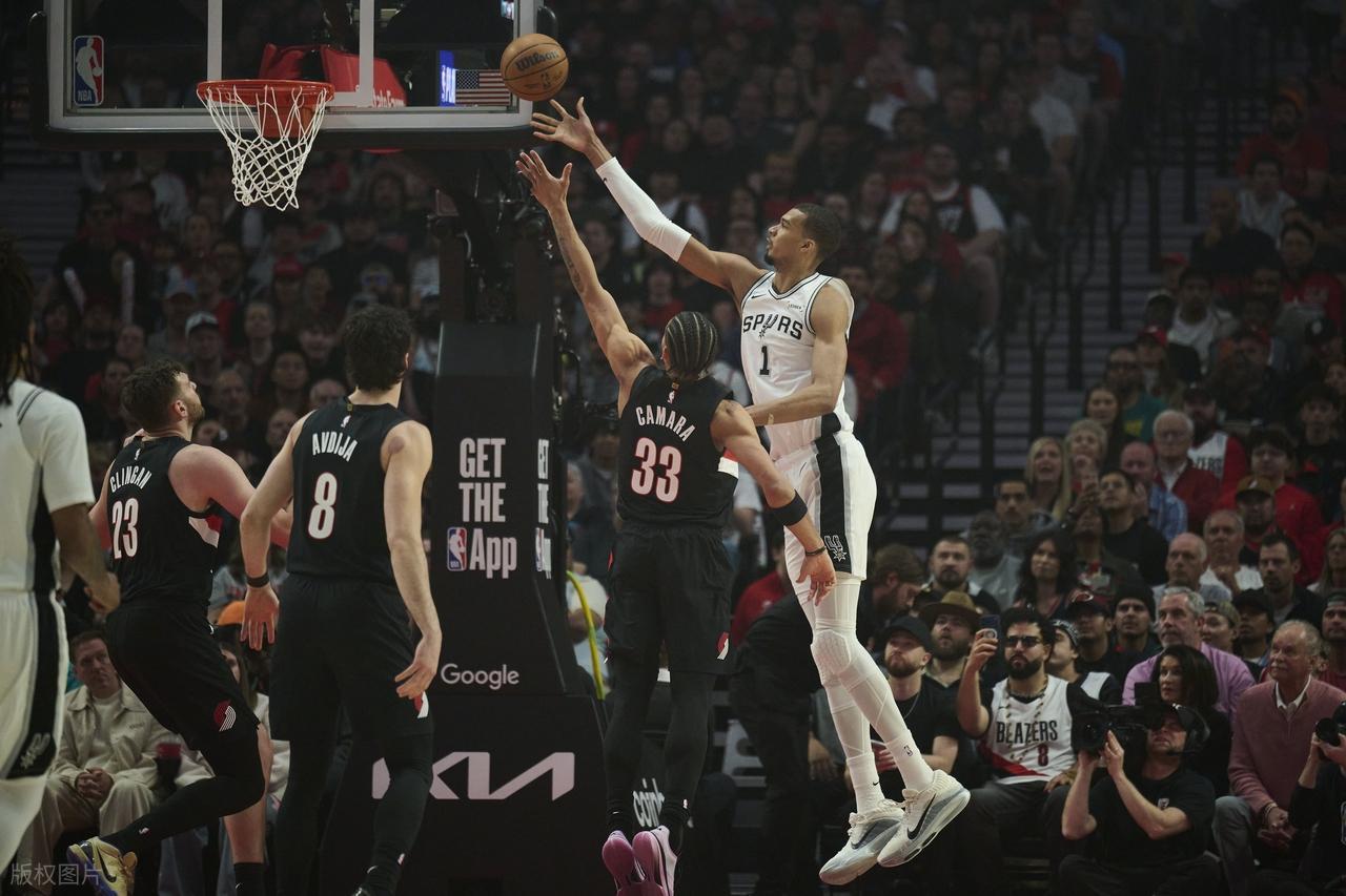 末节决战打响,文班亚马开场连续空接暴扣统治内线,福克斯连得 4 分,逼迫开拓者紧急暂停。暂停归来,福克斯携手约翰逊接连命中三分,马刺轰出一波 16-3 的进攻浪潮,一举拉开 13 分领先。中段格兰特联手霍勒迪合力追分,试图缩小分差;文班亚马不惧双人包夹,强硬造犯规稳定得分,哈珀高难度急停抛投稳稳命中,约翰逊反击上篮打成,再加上福克斯百步穿杨的远投,马刺直接将分差拉大到20分,比赛悬念彻底终结。末尾阶段双方轮换练兵,克林根短暂登场出战一分钟左右。全场战罢,比分定格在114-93,开拓者主场惨遭逆转惨败。马刺拿下这场关键胜利,系列赛大比分来到 3-1,成功手握晋级赛点。